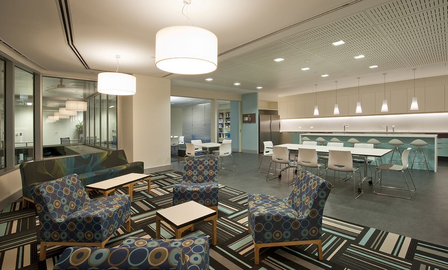 The project featured private offices, workstation areas, conference rooms, library, breakout and kitchen & utility areas. The finishes included feature Atkar panelling, ecoresin panelling, timber flooring, custom joinery, feature light fittings with Dali dimming system and sophisticated AV equipment controlled via a BMS.