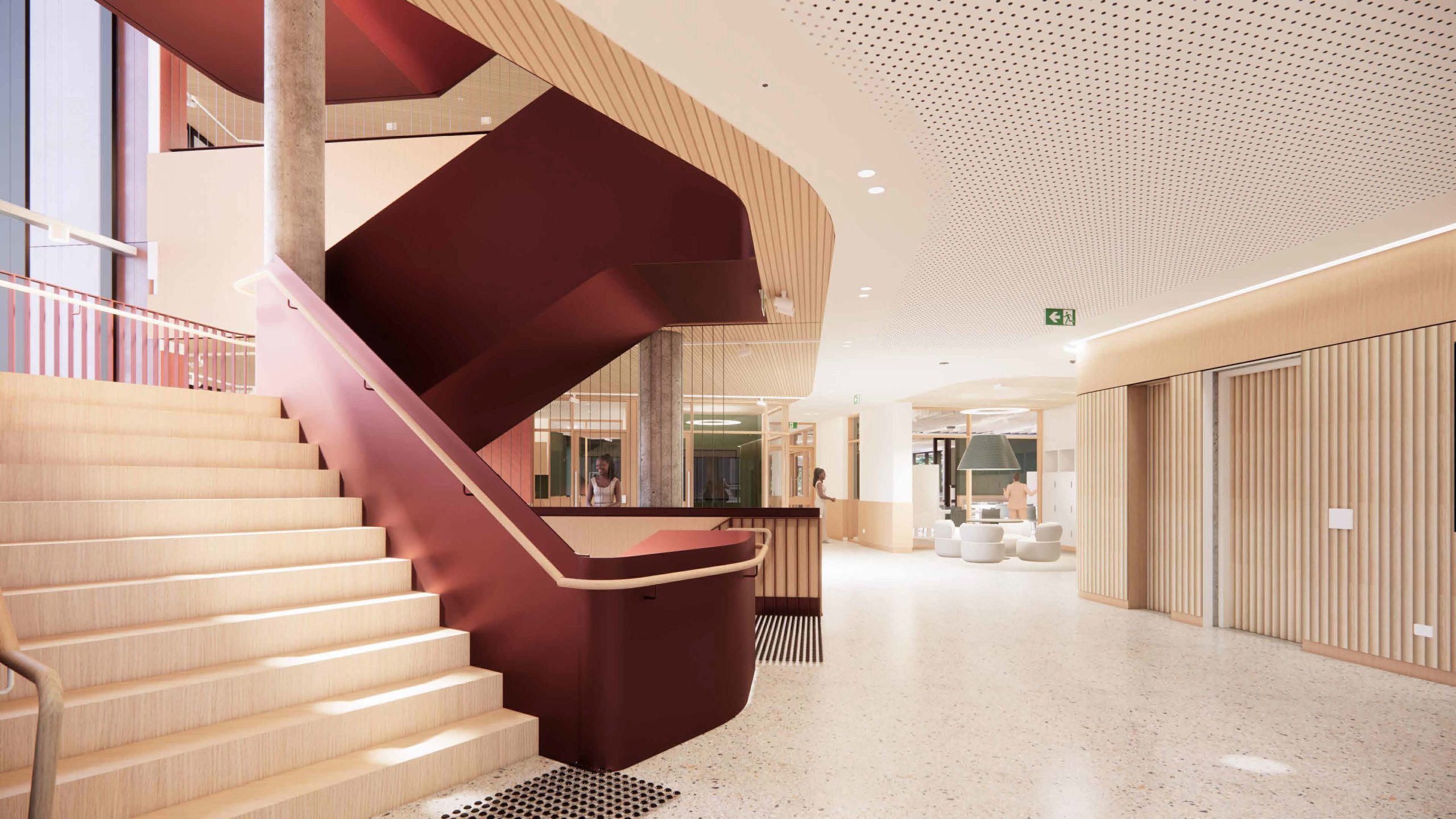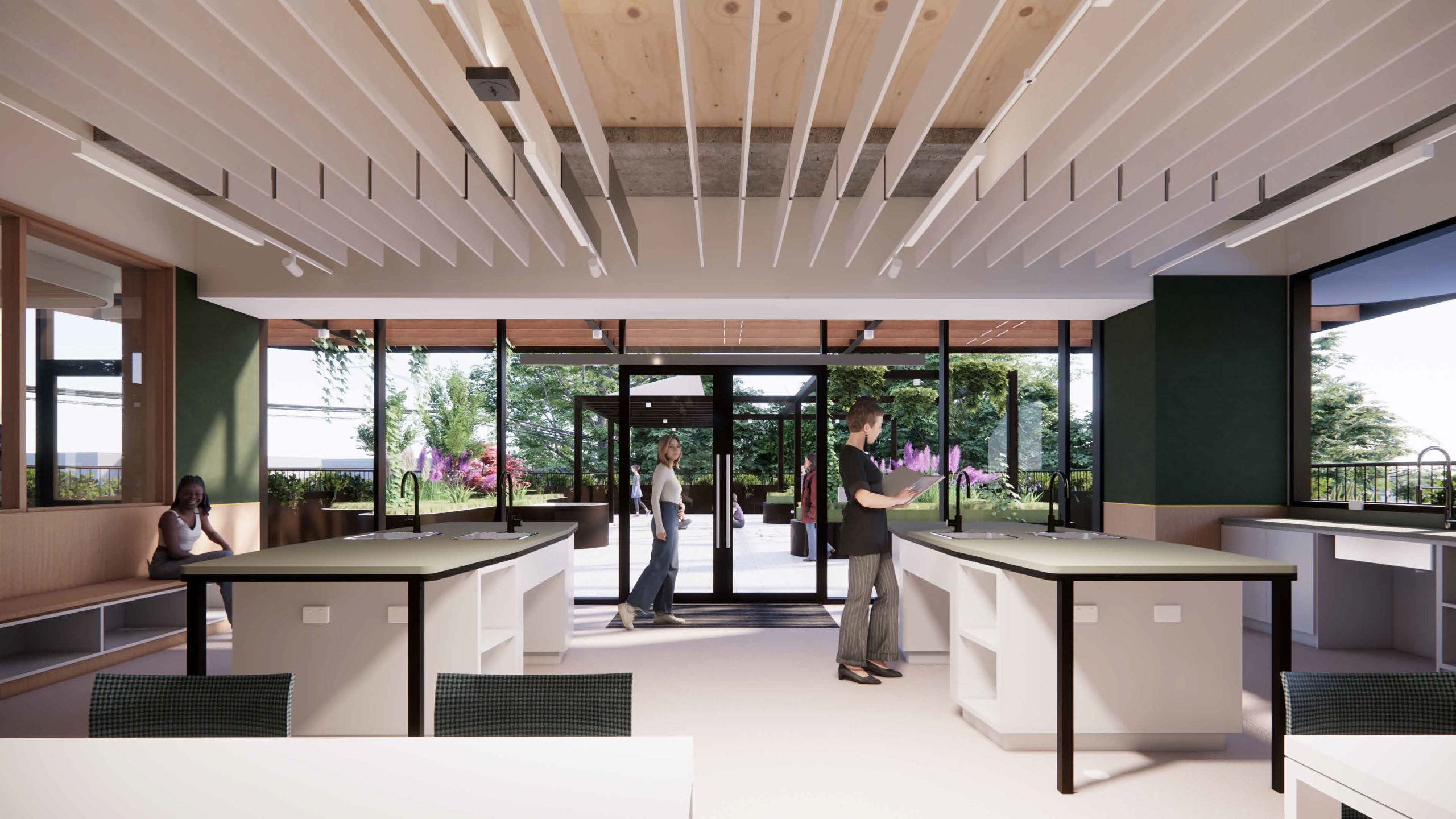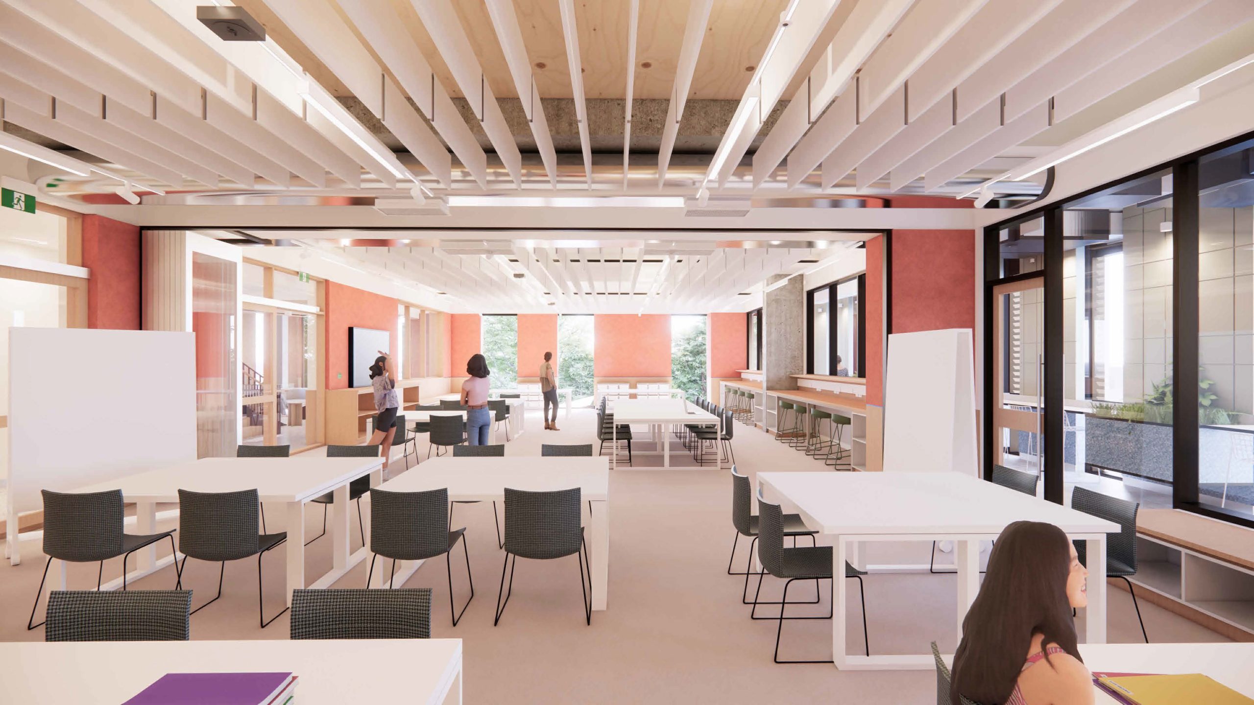 On Level 1, a café with an adjoining deck will provide a welcoming space for informal learning and social connection. Breakout areas will complement Environments Learning Zones and a dedicated laboratory, while an Urban Farming Terrace will enable exploration of sustainability and environmental studies. Staff hubs, offices, and amenities will ensure seamless integration of teaching and administration.